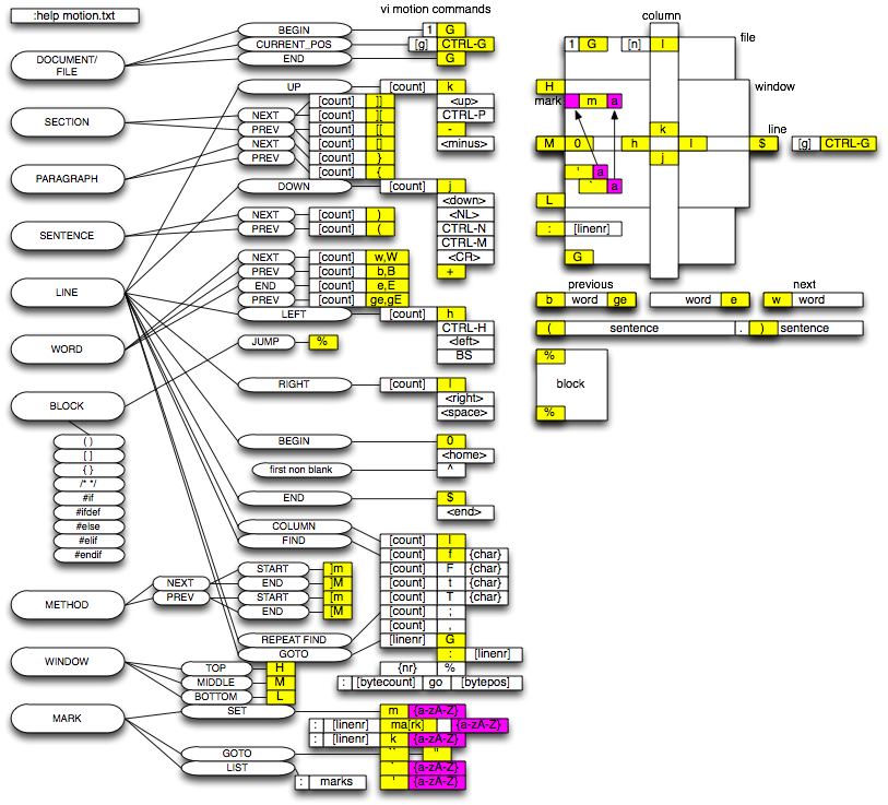 vi navigation, motion commands overview